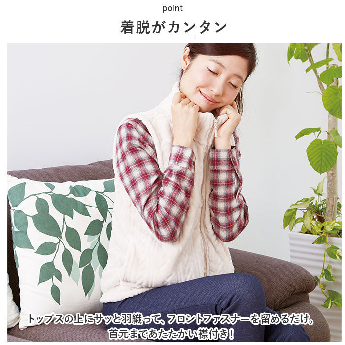あったか ベスト レディース 通販 ボアベスト 前開き 秋冬 裏起毛 背中 温め 部屋着 襟付き 襟 付き あったかグッズ 防寒グッズ ルームウェア 暖かい 首 温める グッズ
