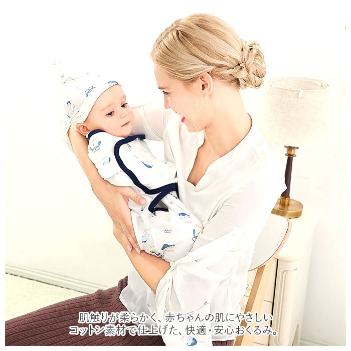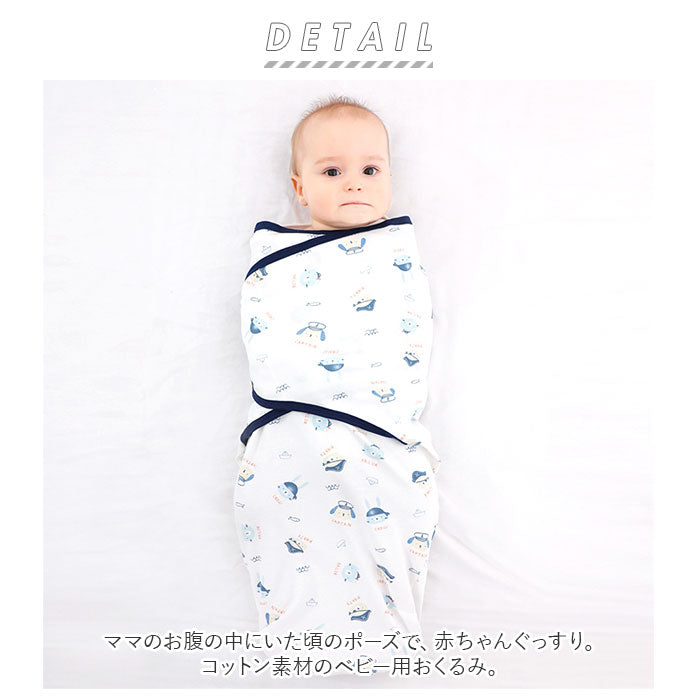 ・肌触りが柔らかく、赤ちゃんの肌にやさしいコットン素材で仕上げた、快適・安心おくるみ。