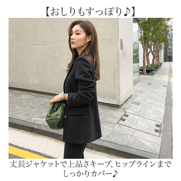 ・丈長ジャケットで上品さキープ、ヒップラインまでしっかりカバー♪