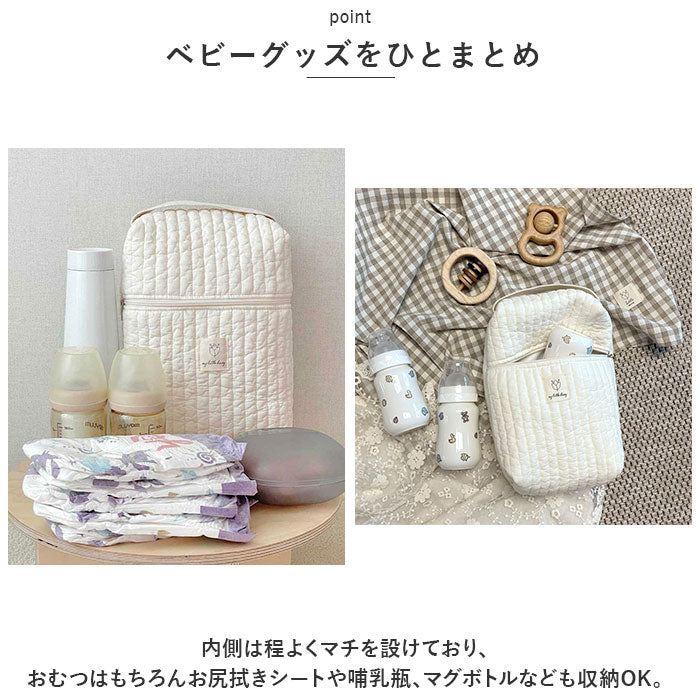 おむつポーチ バッグ オムツポーチ 通販 マルチポーチ マグポーチ ベビーポーチ マザーズバッグ マザーズバック ベビーカーバッグ ベビーカーバック ポーチ キルト マチ付き マタニティ