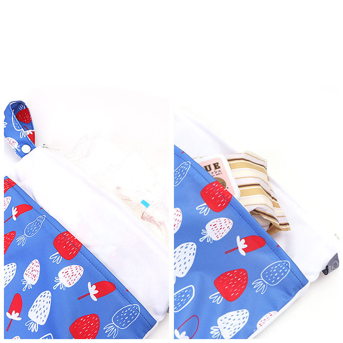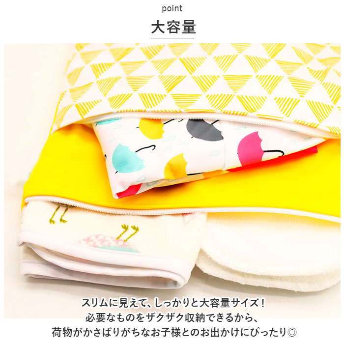 ・生地には撥水加工を施しているので、汚れに強い!オムツや着替えなど、汚れたものを入れるビニールの代わりとして使える◎(※完全防水ではございません。)