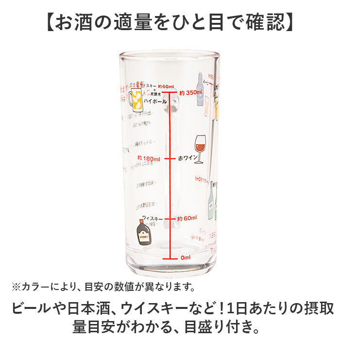 ・ビールや日本酒、ウイスキーなど!1日あたりの摂取量目安がわかる、目盛り付き。