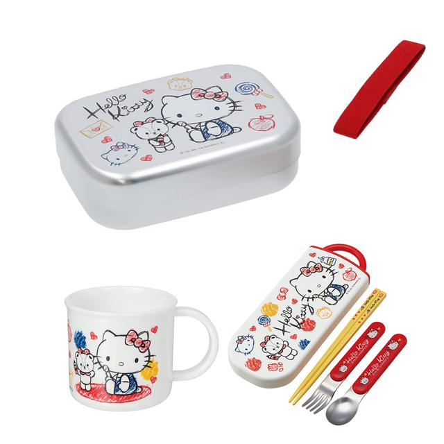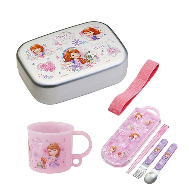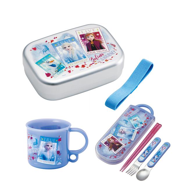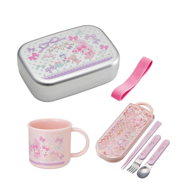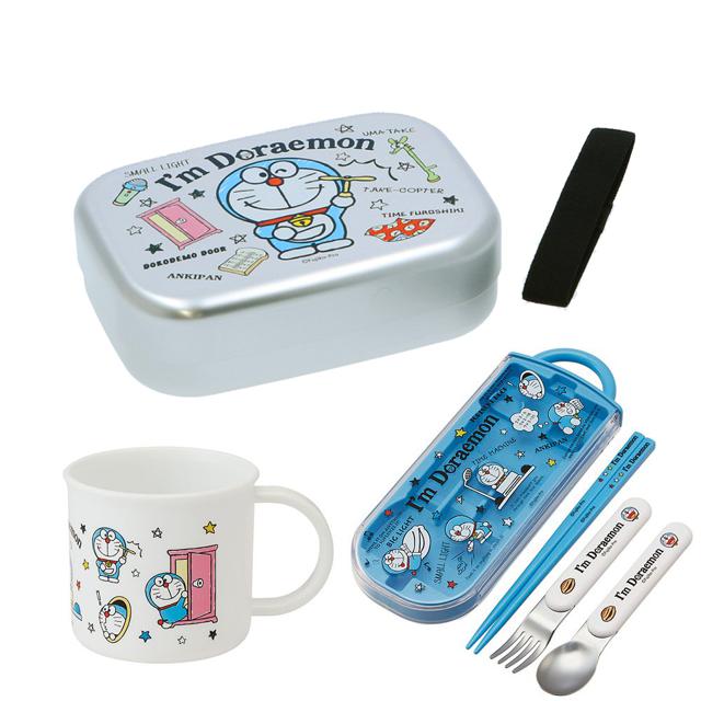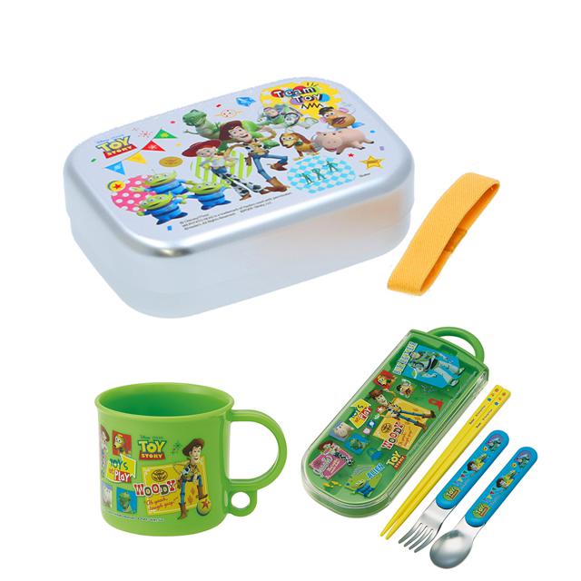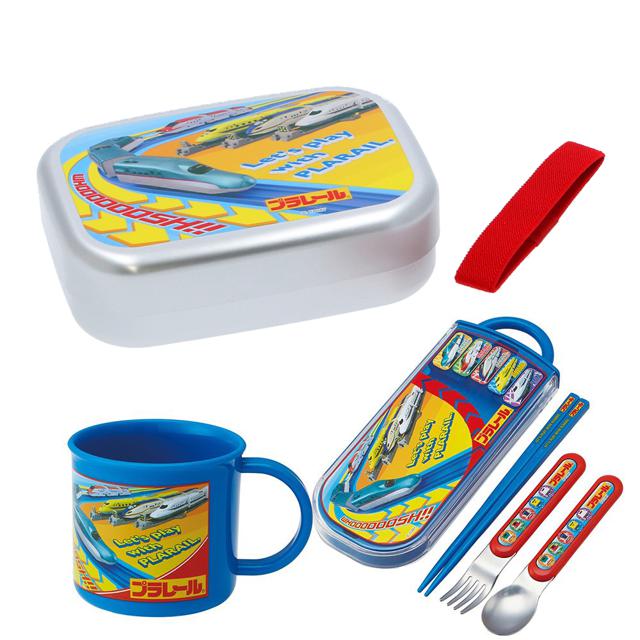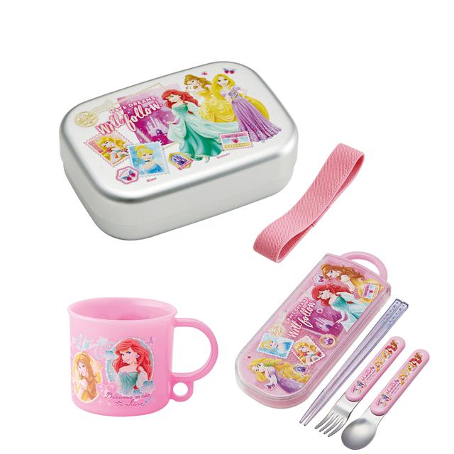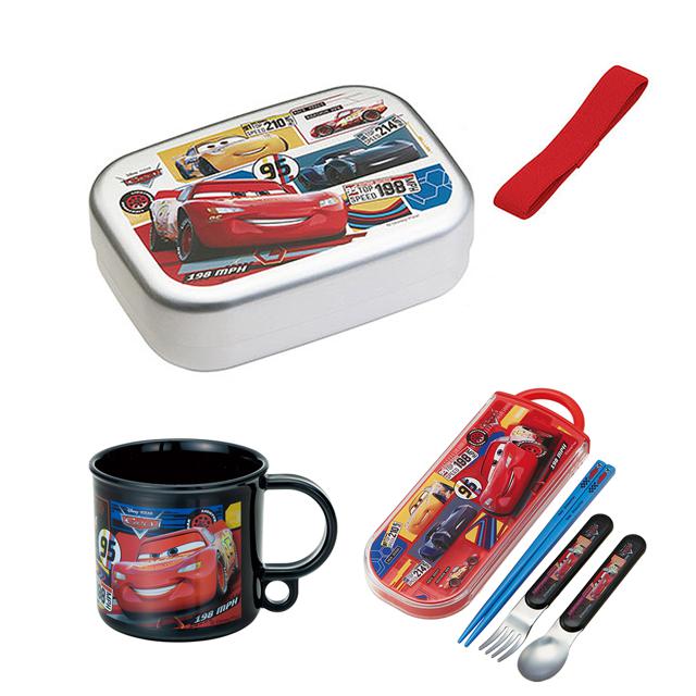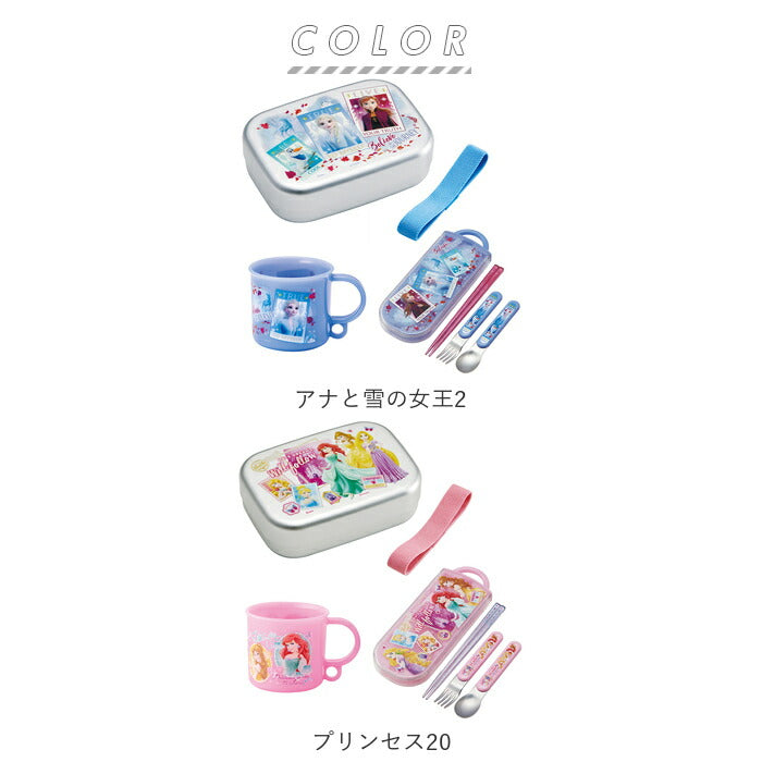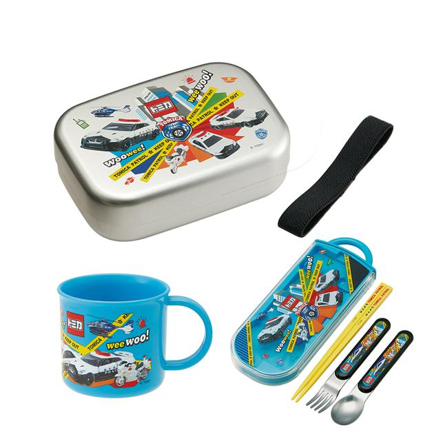 ・人気キャラクターの絵柄が可愛い!アルミ弁当箱とカトラリーのトリオセット、プラコップの3点セット。
