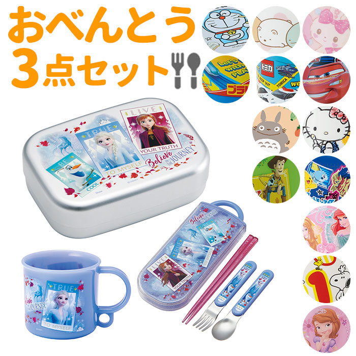 お弁当箱 セット 子供 通販 弁当箱セット 入園準備 ランチボックス プラコップ 箸 弁当箱 トリオセット カトラリー プラコップ お弁当 ランチグッズ 弁当 食洗機対応 遠足 アルミ弁当 キャラクター アナ雪 プリンセス ソフィア トイストーリー カーズ キティ ぼんぼんりぼん