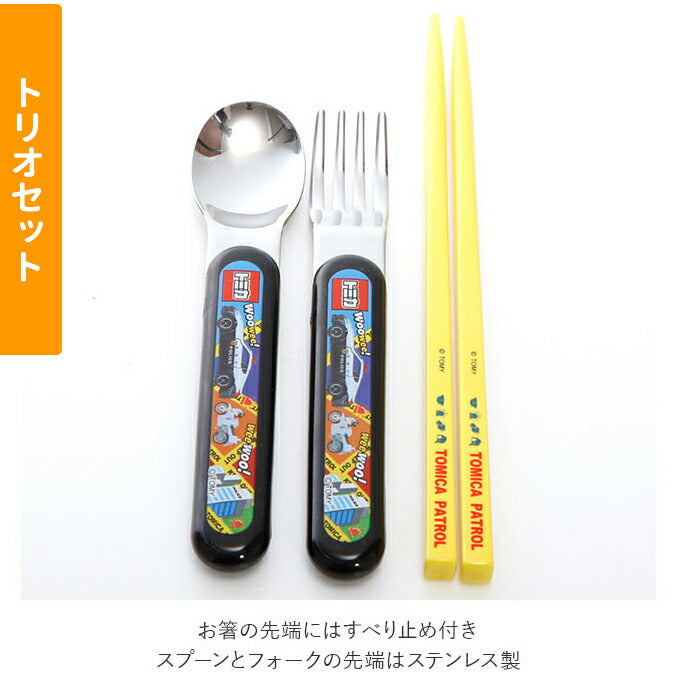 ・食洗機対応のキッズ向け、お箸・フォーク・スプーンとケースのトリオセット。