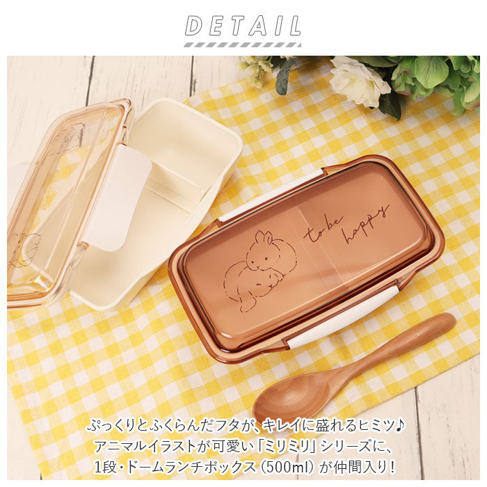 ・ぷっくりとふくらんだフタが、キレイに盛れるヒミツ♪アニマルイラストが可愛い「ミリミリ」シリーズに、1段・ドームランチボックス(500ml)が仲間入り!