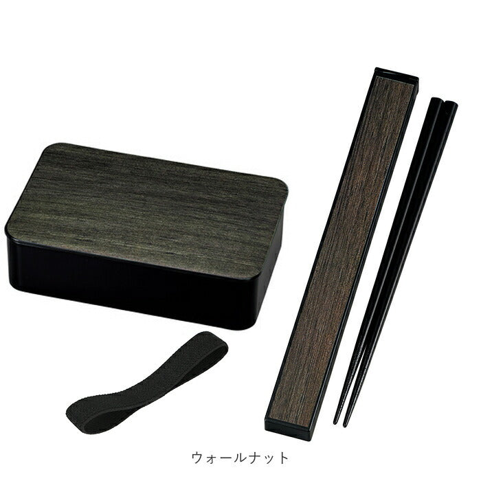 ・カジュアルな木目調カラーの箸箱と、シンプルなブラックカラーのお箸セット。