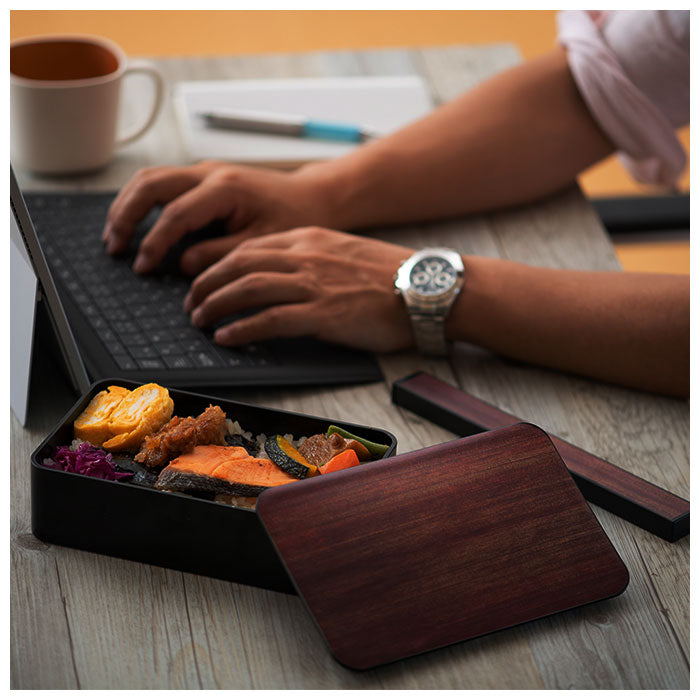 ・詰めやすく洗いやすい!毎日のお弁当作りに活躍する一段ランチ Mサイズと、シックな印象の箸箱セット。