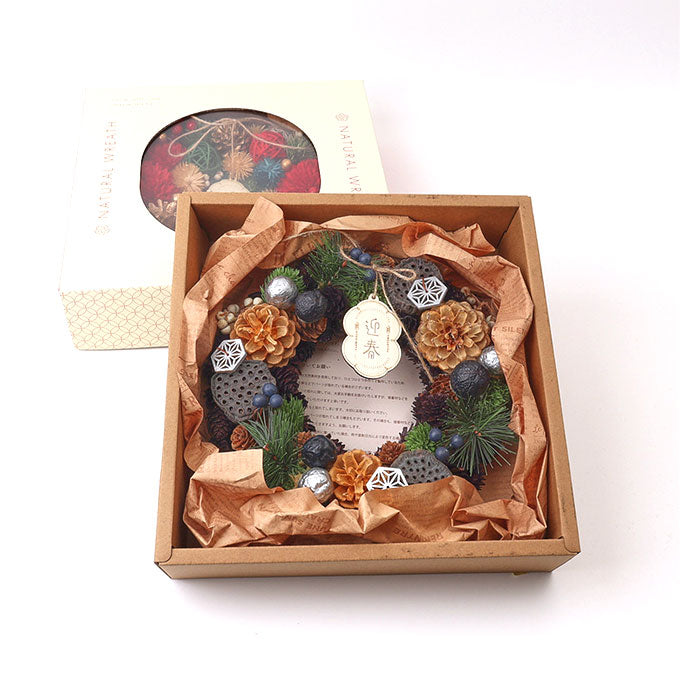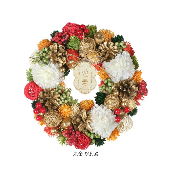 お正月 リース M 通販 玄関リース 冬 玄関 飾り Mサイズ 玄関飾り 壁飾り 秋 正月飾り 花 オーナメント GREEN HOUSE グリーンハウス ギフトボックス ウェルカム クリスマス ハロウィン