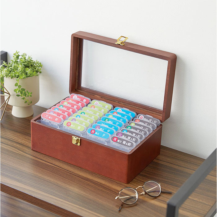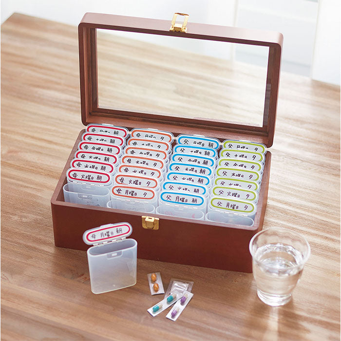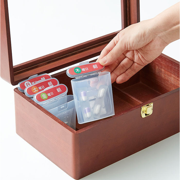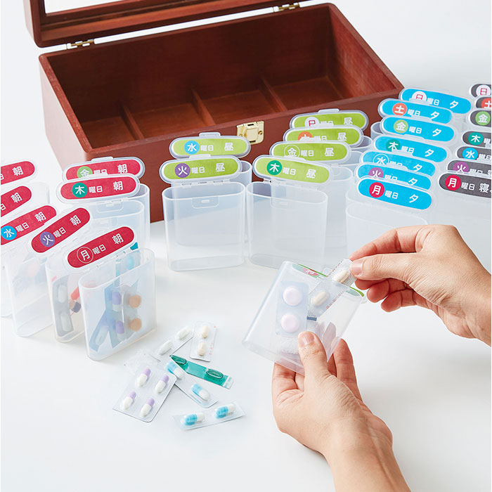 ・一週間分を朝昼晩で分類収納。薬の管理がひと目でわかる仕様です。