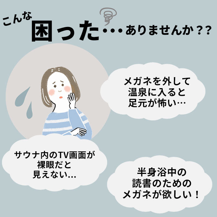 ・お風呂で活躍!サウナもOK◎入浴中の見えないを解決「お風呂用メガネ 近眼用」が登場。