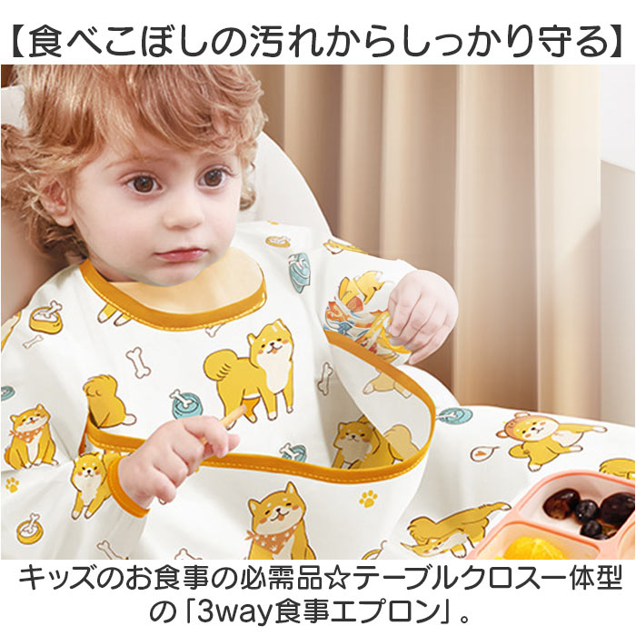 お食事エプロン 子ども 通販 キッズ エプロン スタイ 袖付き 食事 食べこぼし ベビー ベビースタイ 食事エプロン 女の子 男の子 子供用 テーブルクロス 一体型 かわいい おしゃれ 可愛い