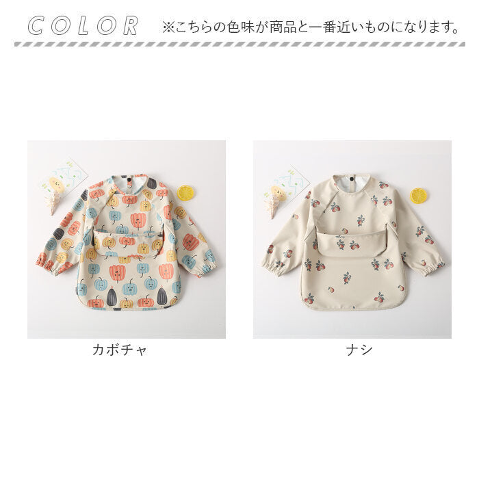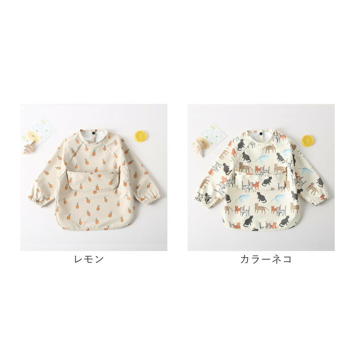お食事エプロン 子供用 ポケット付き 長袖 ysymbib5236