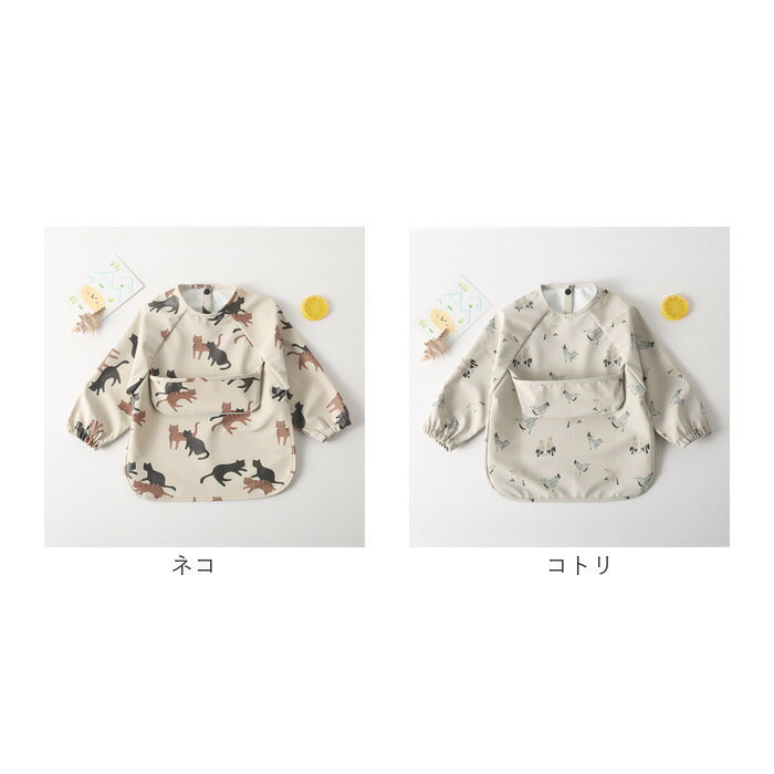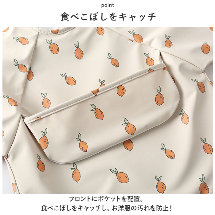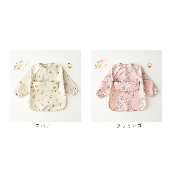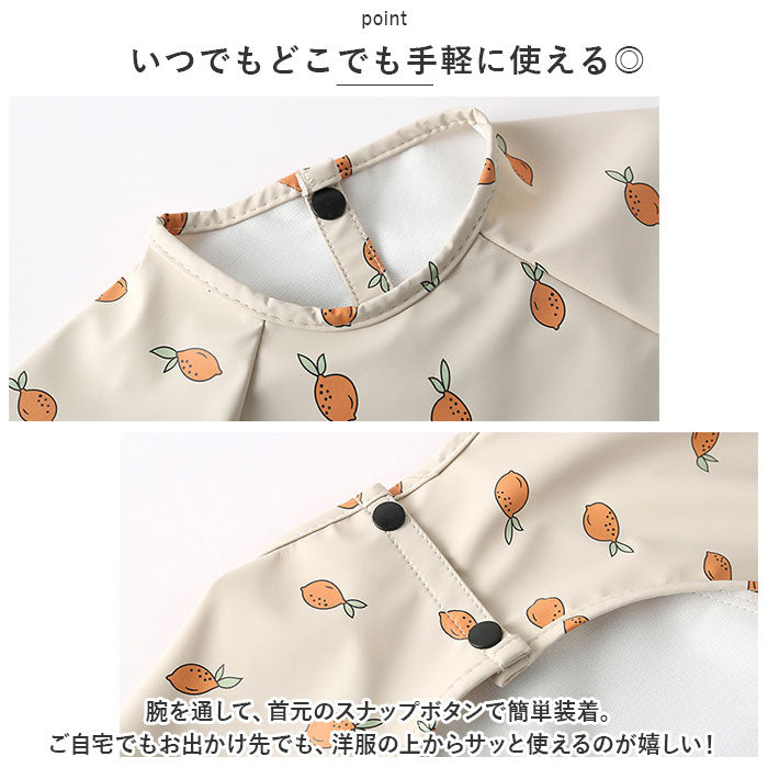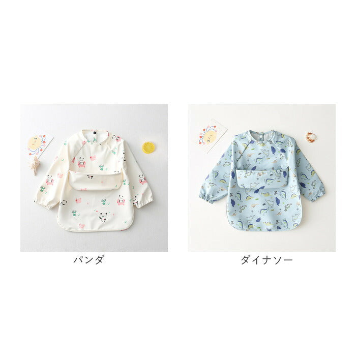 お食事エプロン 通販 お食事スタイ 食事用 エプロン ベビーエプロン 長袖 袖付き ポケット付き 撥水 はっ水 スナップボタン 柔らかい 洗える コンパクト 軽い 幼稚園 保育園 入園準備