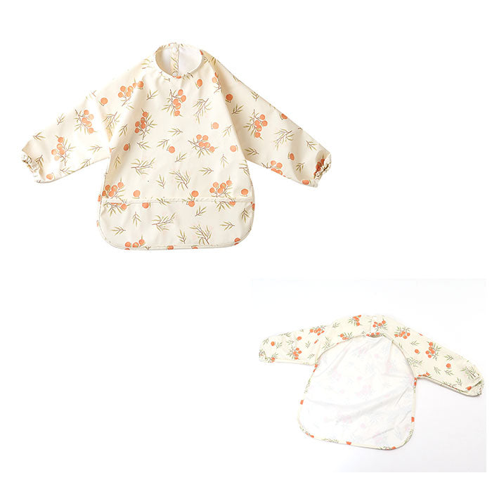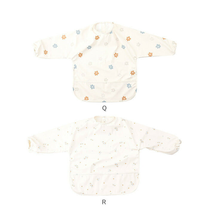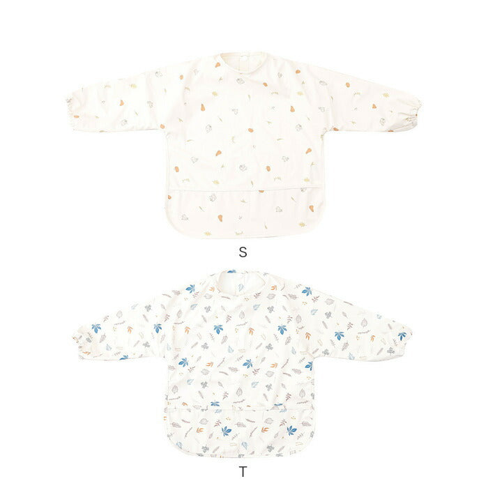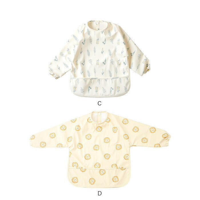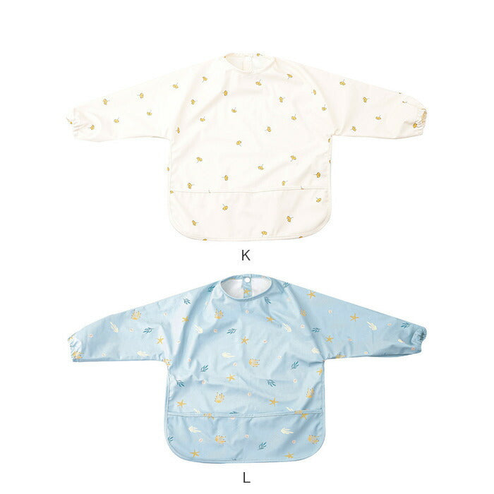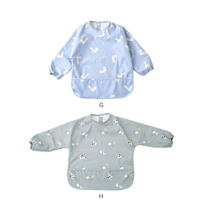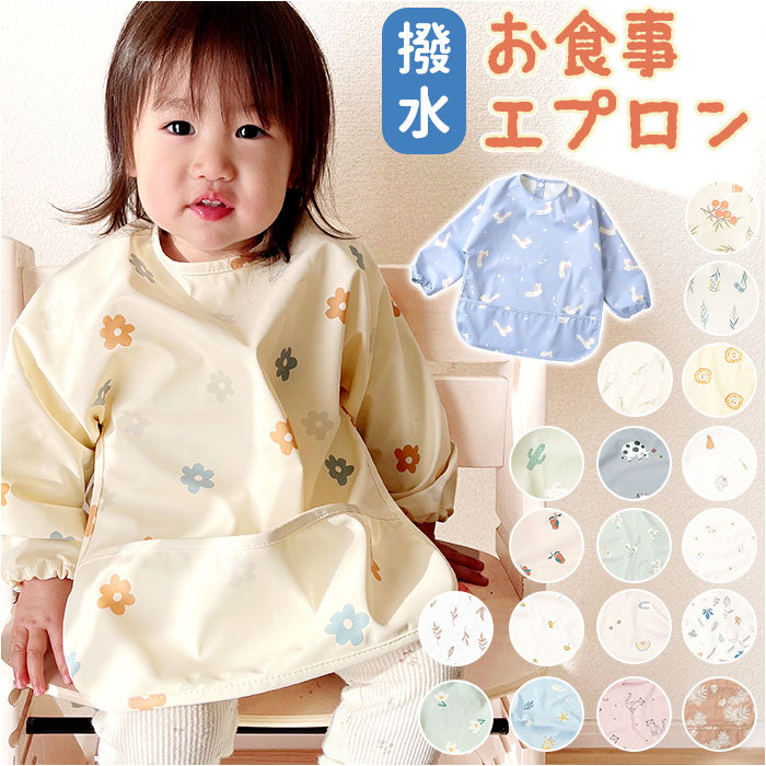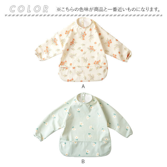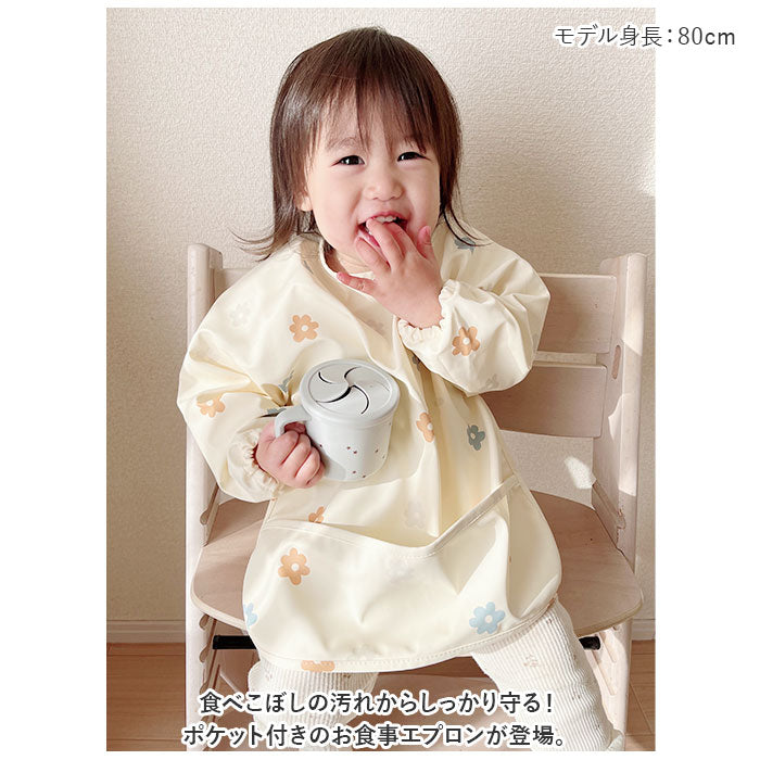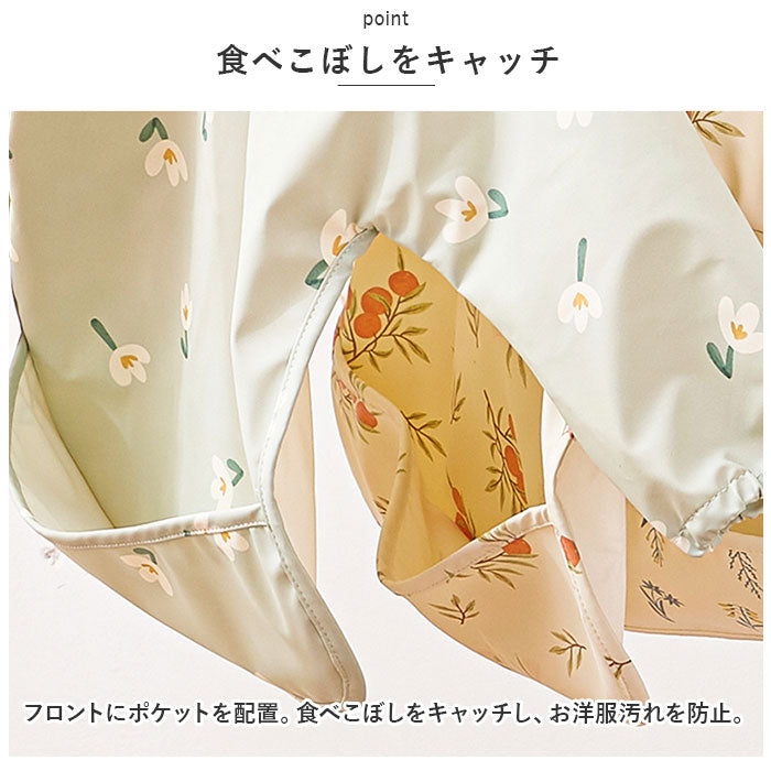 お食事エプロン 長袖 通販 お食事ビブ エプロン 袖付き ベビー 赤ちゃん スタイ スナップボタン ポケット付き 撥水 保育園 入園準備 食べこぼし 離乳食 掴み食べ ロングスリーブ スモック