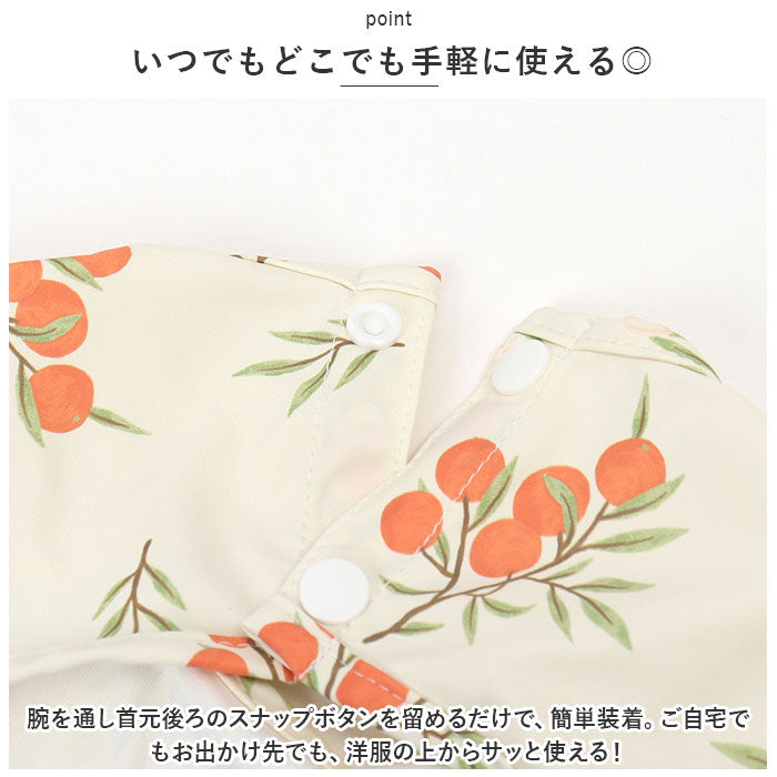・腕を通し首元後ろのスナップボタンを留めるだけで、簡単装着。ご自宅でもお出かけ先でも、洋服の上からサッと使える!