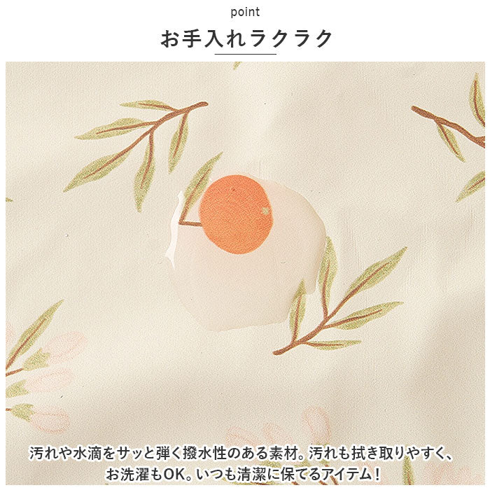 ・汚れや水滴をサッと弾く撥水性のある素材。汚れも拭き取りやすく、お洗濯もOK。いつも清潔に保てるアイテム!