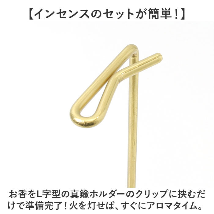 ・お香をL字型の真鍮ホルダーのクリップに挟むだけで準備完了!火を灯せば、すぐにアロマタイム。