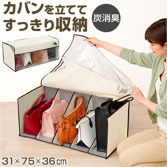 かばん収納ケース 通販 カバン収納 鞄収納 カバン収納ボックス バッグ収納 バック収納 炭消臭 立てて収納 整理整頓 透明窓 折り畳み コンパクト 折りたたみ 収納用品 棚上 クローゼット