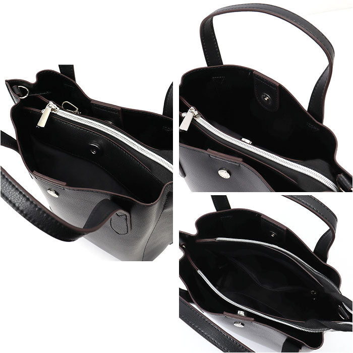 ・内側は長財布や600mlペットボトルを、縦向きに収納OK。細々した物が迷子になりにくい、2つの内ポケット付き。