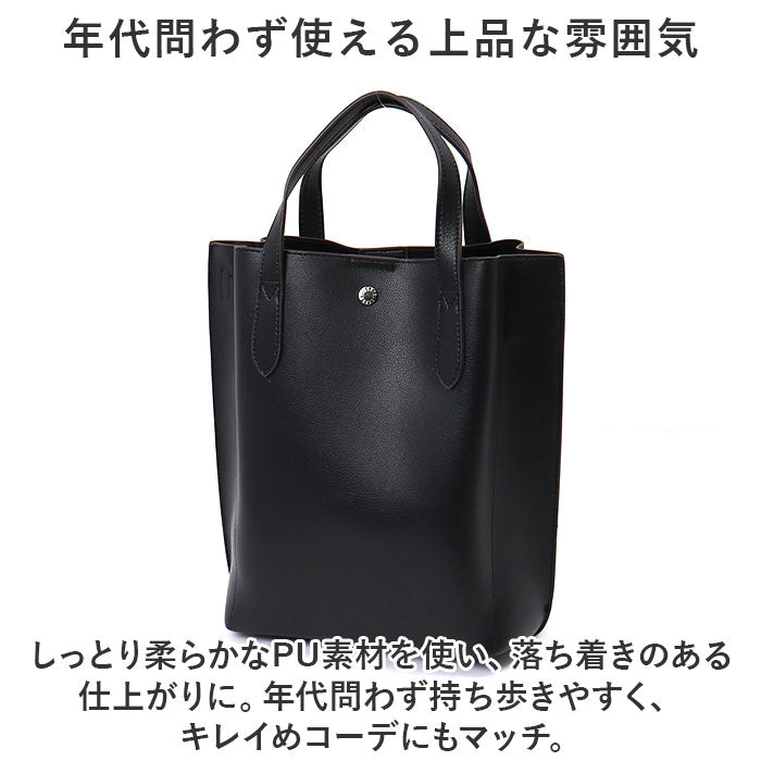 ・しっとり柔らかなPU素材を使い、落ち着きのある仕上がりに。年代問わず持ち歩きやすく、キレイめコーデにもマッチ。