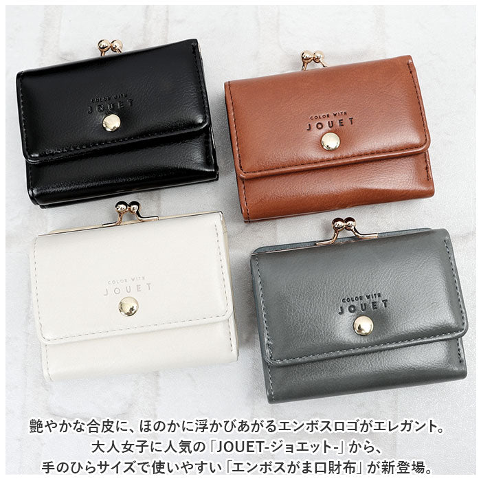 ・艶やかな合皮に、ほのかに浮かびあがるエンボスロゴがエレガント。大人女子に人気の「JOUET-ジョエット-」から、手のひらサイズで使いやすい「エンボスがま口財布」が新登場。