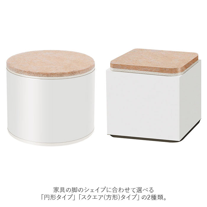 ・家具の脚のシェイプに合わせて選べる「円形タイプ」「スクエア(方形)タイプ」の2種類。高さや大きさもお好みのサイズがチョイス可能。
