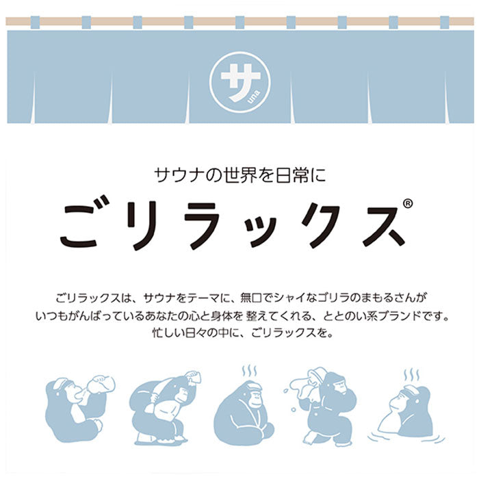 ・ごリラックスは、サウナをテーマに、無口でシャイなゴリラのまもるさんが、いつもがんばっているあなたの心と身体を整えてくれる、ととのい系ブランド。