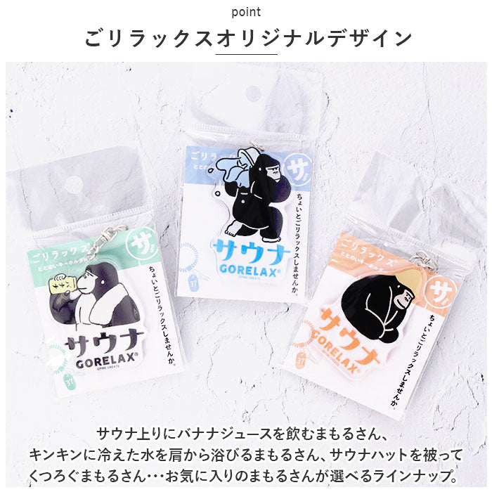 ・カラダもココロもすっきりととのう♪サ活を楽しむすべての人を応援するコミカルなキーホルダー。「ごリラックス」はサウナーさんたちの合言葉!