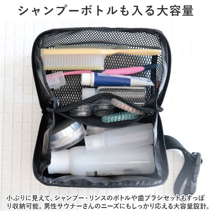 ごリラックス サウナ ポーチ バッグ バック 通販 サ活BOX 小物入れ サウナポーチ サウナ用ポーチ 収納 通気性 メッシュ 大容量 取り出しやすい 180℃ 大きく開く パカっと開く 小物
