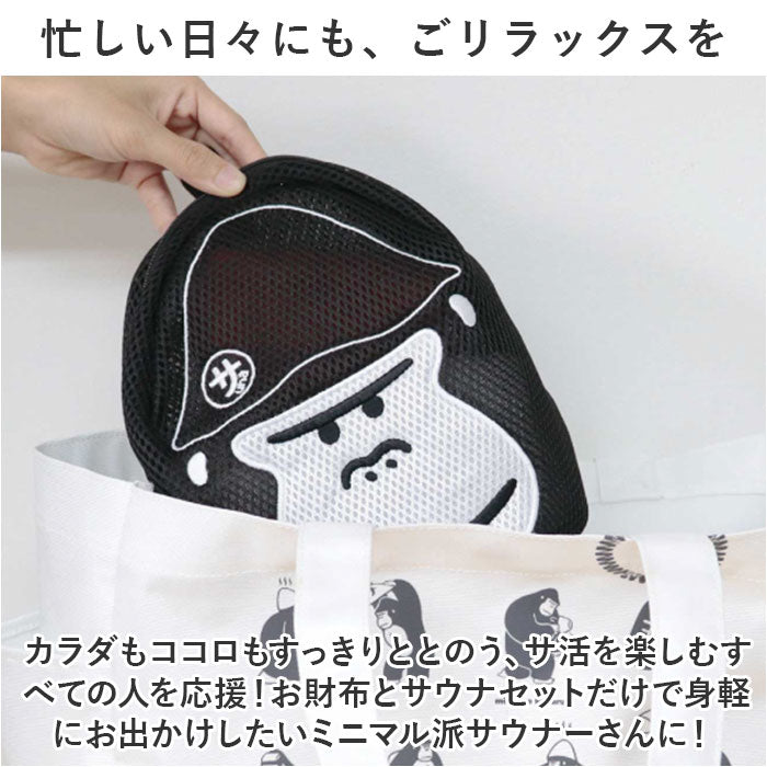 ごリラックス 洗える ポーチ 通販 洗えるポーチ 小物入れ サウナポーチ サウナ用ポーチ 収納 洗濯機にポイ 通気性 メッシュ 大容量 取り出しやすい キャラクター キャラ まもるさん
