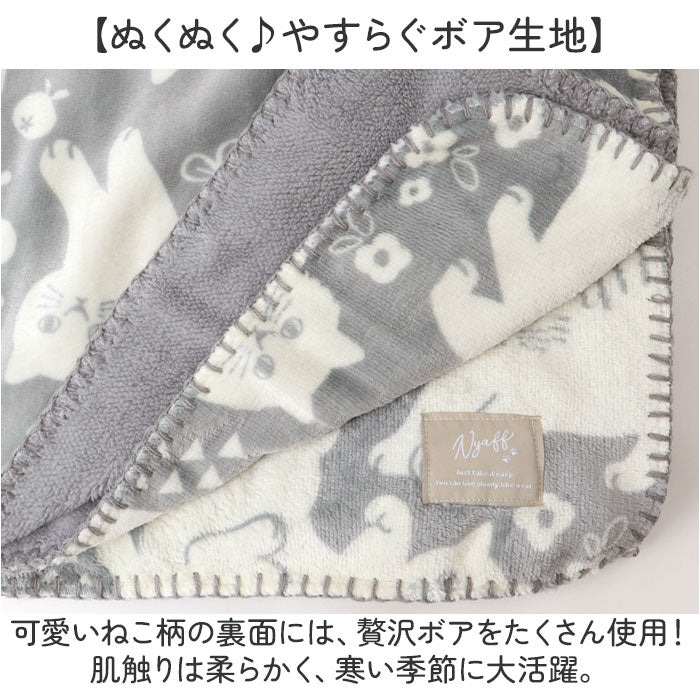 ・可愛いねこ柄の裏面には、贅沢ボアをたくさん使用!肌触りは柔らかく、寒い季節に大活躍。