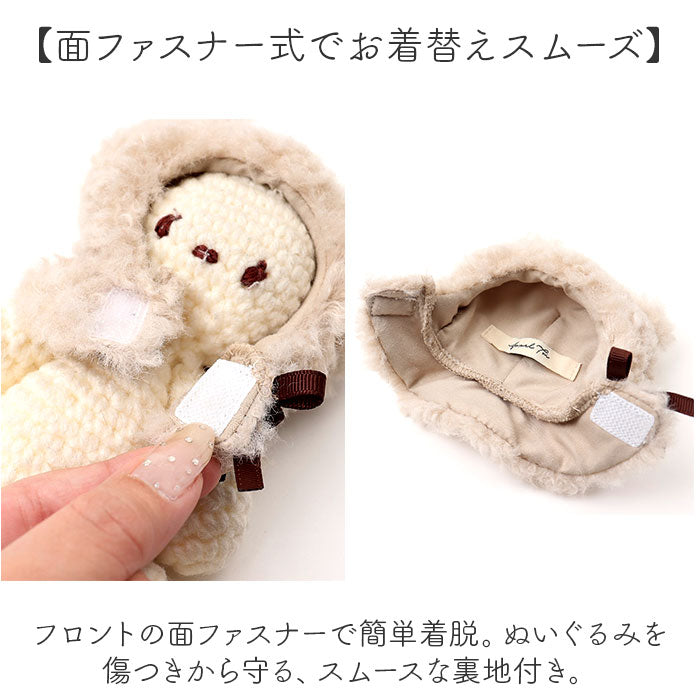 ・フロントの面ファスナーで簡単着脱。ぬいぐるみを傷つきから守る、スムースな裏地付き。