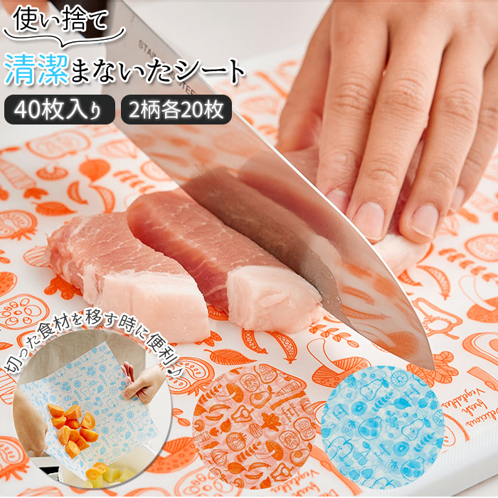 まな板シート 使い捨て 通販 清潔まな板シート 40枚入 まな板 まないた 汚れ防止 におい移り防止 色移り ニオイ移り 雑菌対策 粉飛び おしゃれ かわいい ワイズコーポレーション シートまな板 カッティングボード 調理道具 調理器具