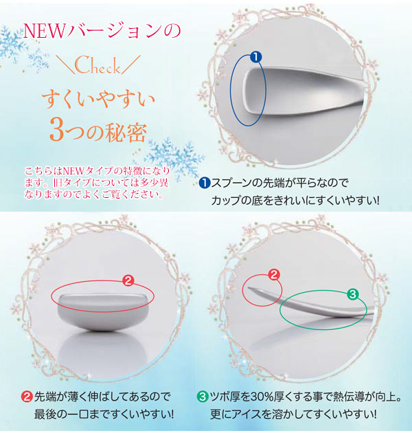 熱伝導率の良いアルミ製なので、体温をスプーン伝えて固いアイスクリームも溶かし、簡単にすくえます。