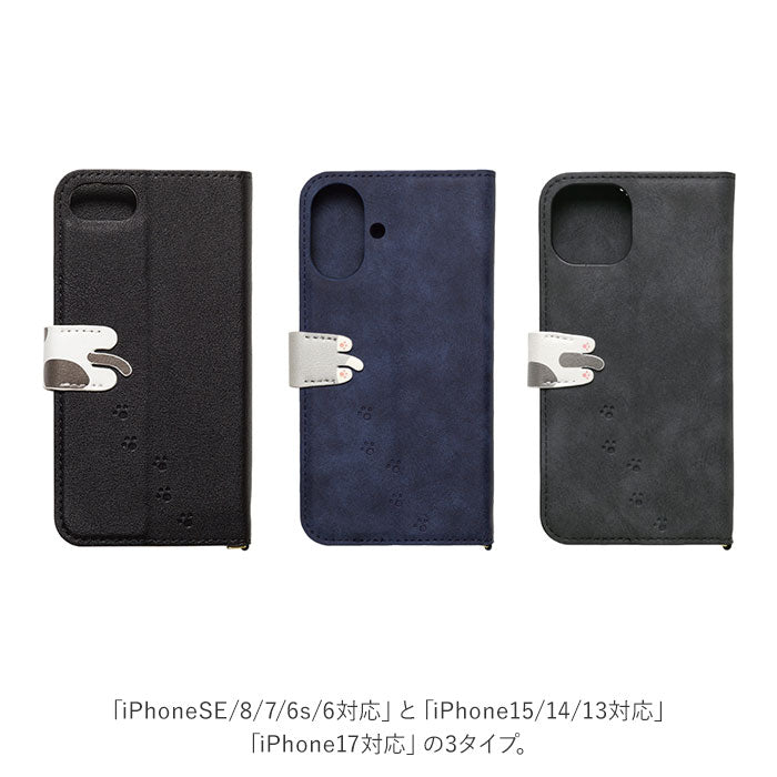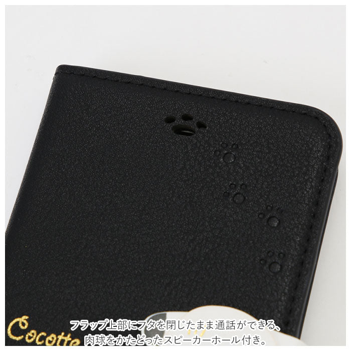 ・フラップ上部にフタを閉じたまま通話ができる、肉球をかたどったスピーカーホール付き。そのほかケースの随所に肉球マークの型押しを施し、細部までこだわったつくりにも要注目。