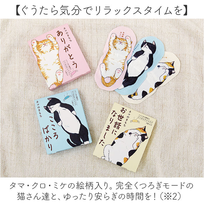 ・タマ・クロ・ミケの絵柄入り。完全くつろぎモードの猫さん達と、ゆったり安らぎの時間を!
