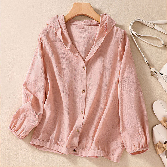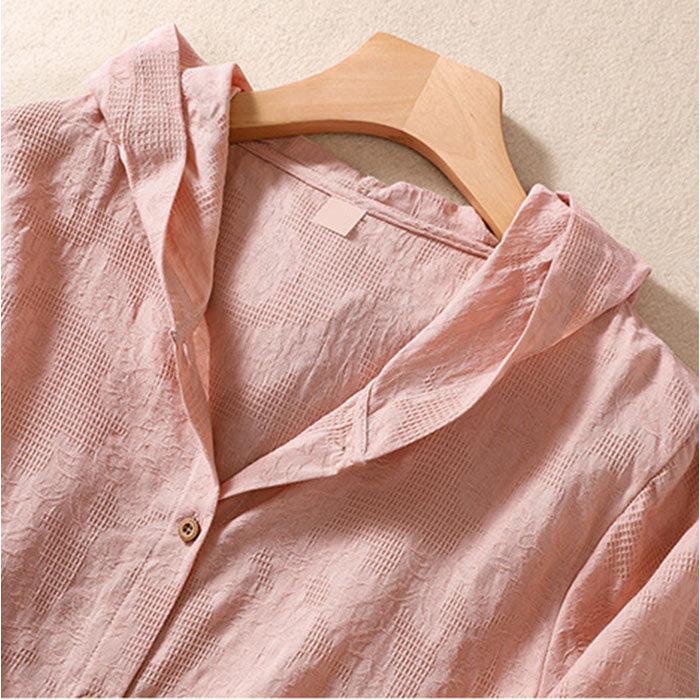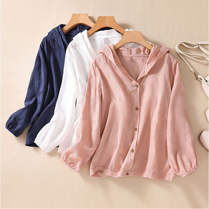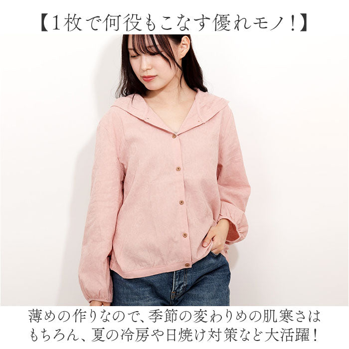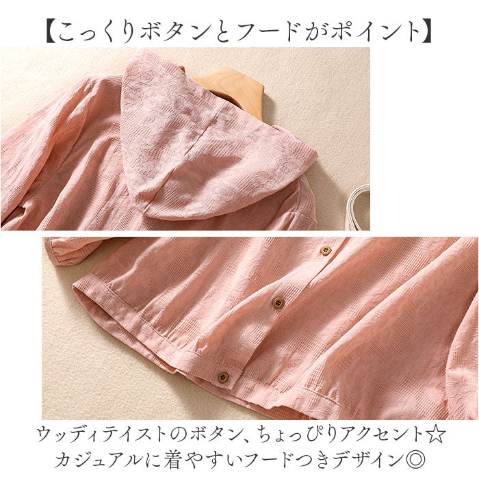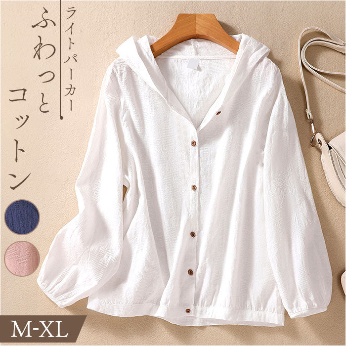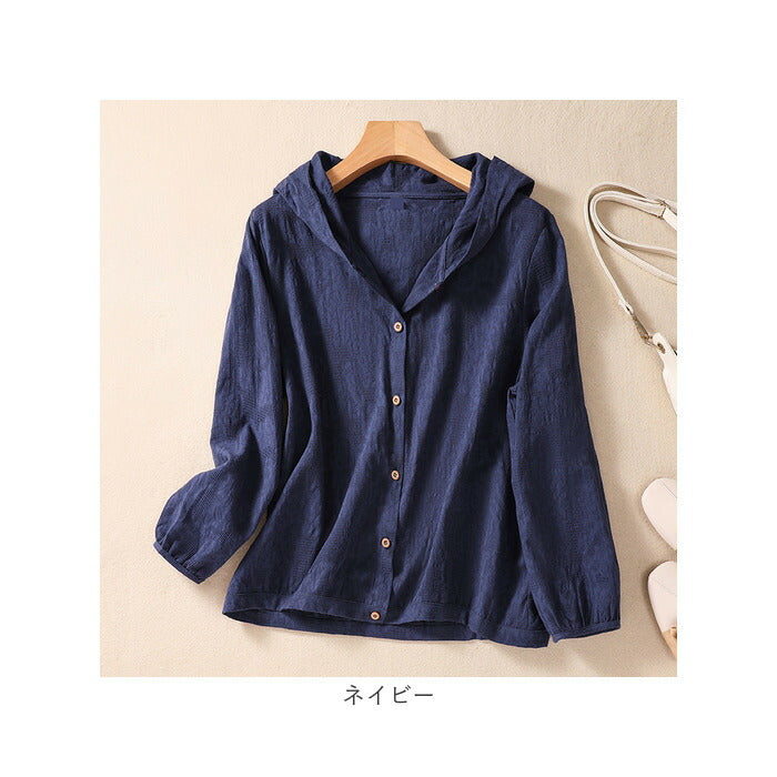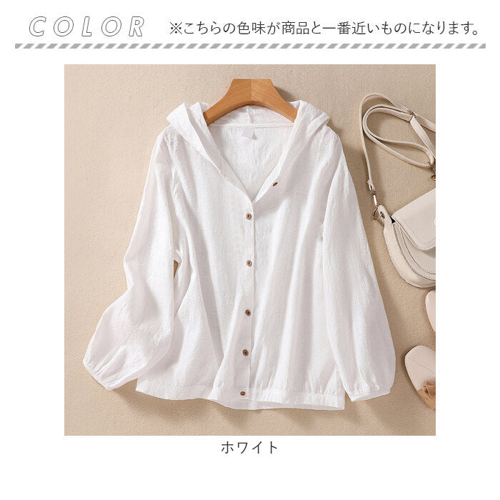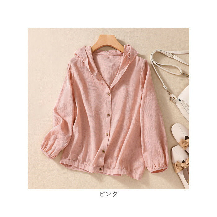 アウター パーカー レディース 綿麻 通販 ジャケット 羽織り 羽織 ライトアウター 長袖パーカー ブラウス シャツ カーディガン 長袖 フード付き フード 薄手 薄い 無地 前開き ボタン