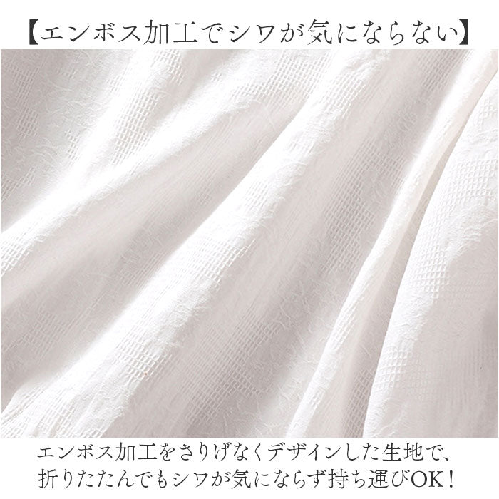 ・エンボス加工をさりげなくデザインした生地で、折りたたんでもシワが気にならず持ち運びOK!