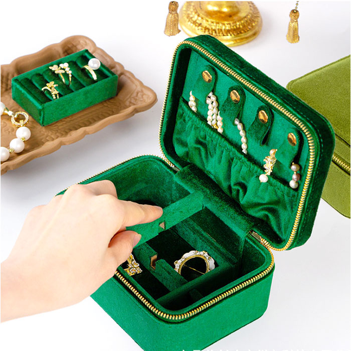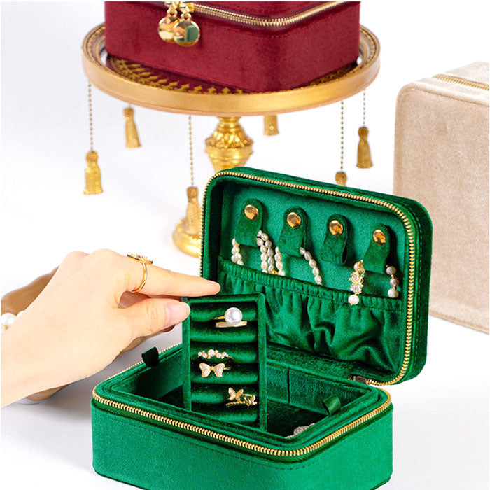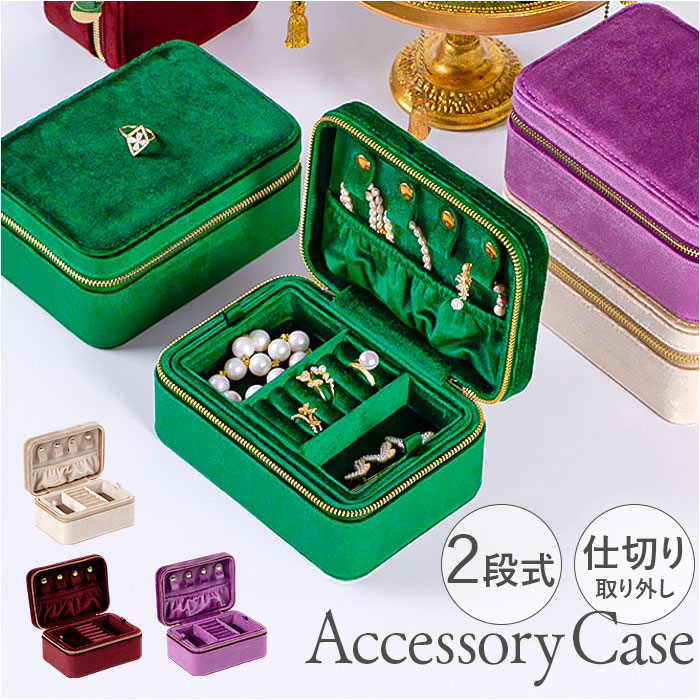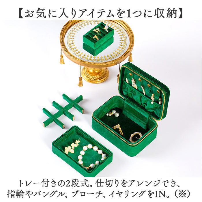 ベロアアクセサリーケース ジュエリーボックス 二段式 持ち運び