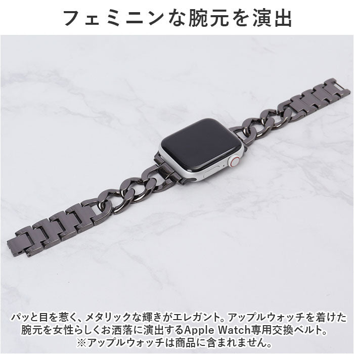 ・パッと目を惹く、メタリックな輝きがエレガント。アップルウォッチを着けた腕元を女性らしくお洒落に演出するApple Watch専用交換ベルト。