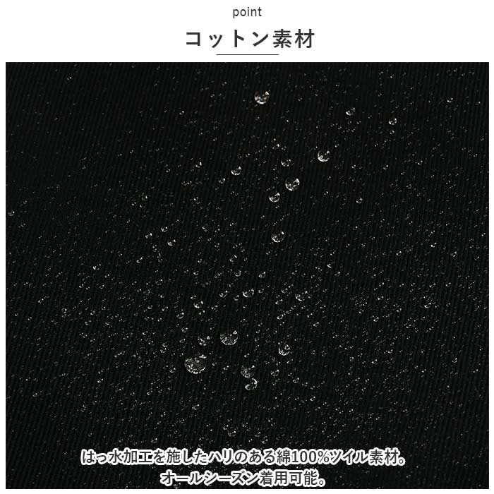 ・はっ水加工を施したハリのある綿100%ツイル素材。オールシーズン着用可能。
