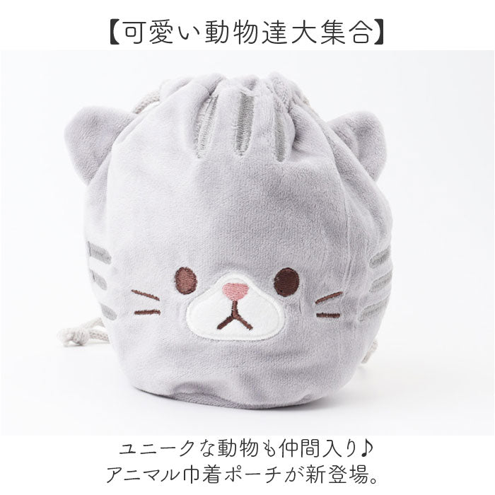 アニマル 巾着 通販 アニマル巾着 ポーチ アニマルポーチ フェイスポーチ ミニポーチ 化粧ポーチ 小物入れ マルチポーチ 持ち運び 可愛い おしゃれ 巾着袋 大人 女性 メイクポーチ