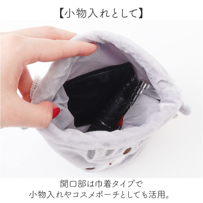・開口部は巾着タイプで小物入れやコスメポーチとしても活用。