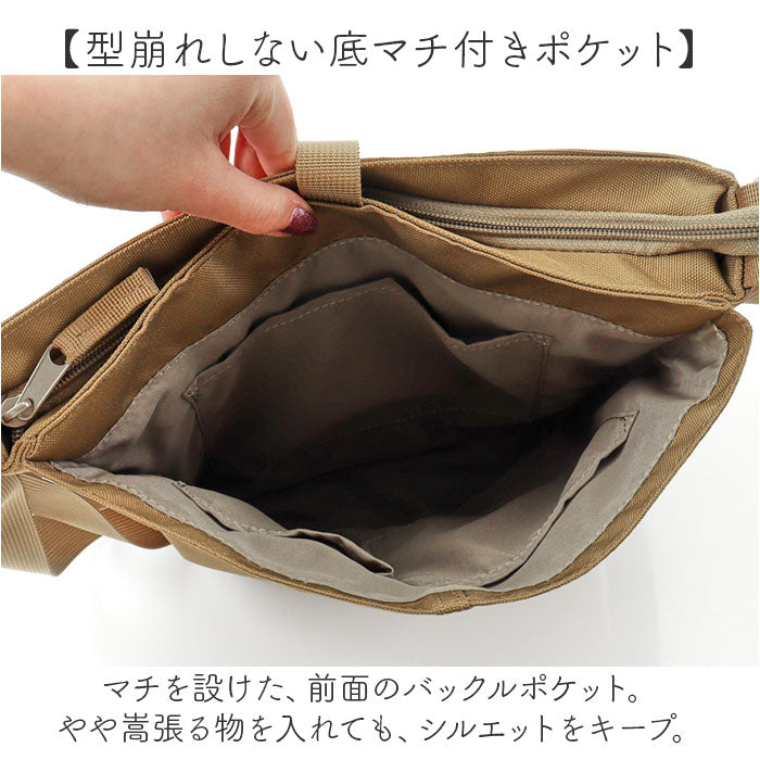 ・マチを設けた、前面のバックルポケット。やや嵩張る物を入れても、シルエットをキープ。