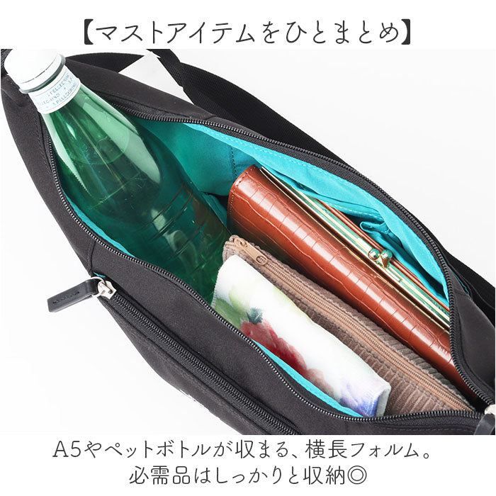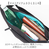 ・A5やペットボトルが収まる、横長フォルム。必需品はしっかりと収納◎