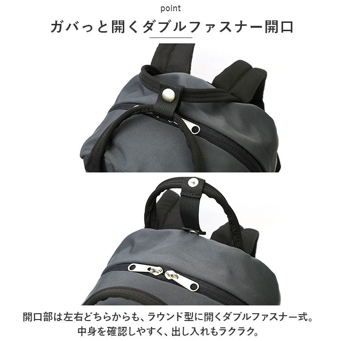 ・サラッとした質感のナイロン生地を使用。丸みのあるフォルムと、さりげない配色使いで可愛らしい印象に。
