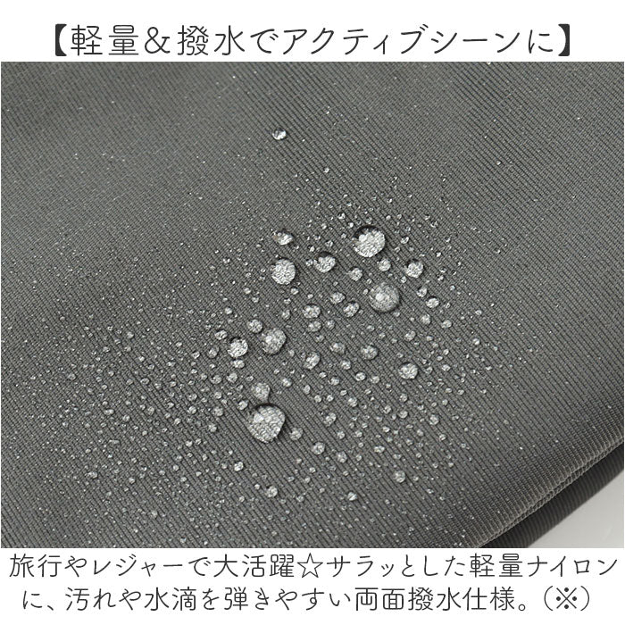・旅行やレジャーで大活躍☆サラッとした軽量ナイロンに、汚れや水滴を弾きやすい両面撥水仕様。