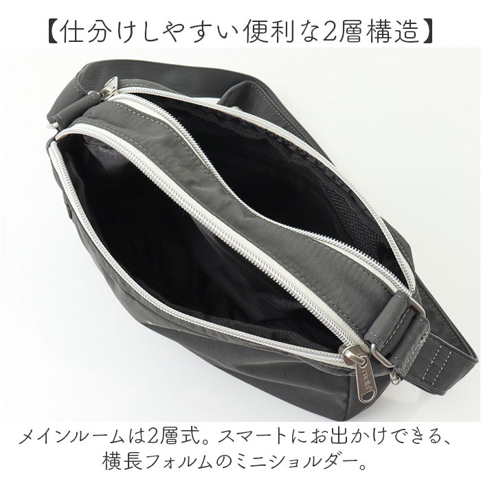 ・メインルームは2層式。スマートにお出かけできる、横長フォルムのミニショルダー。