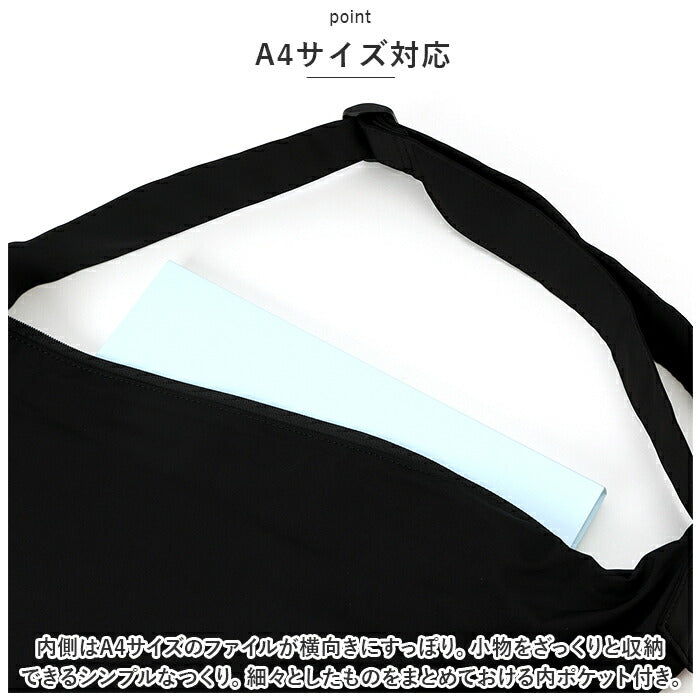 ・内側はA4サイズのファイルが横向きにすっぽり。小物をざっくりと収納できるシンプルなつくり。細々としたものをまとめておける内ポケット付き。